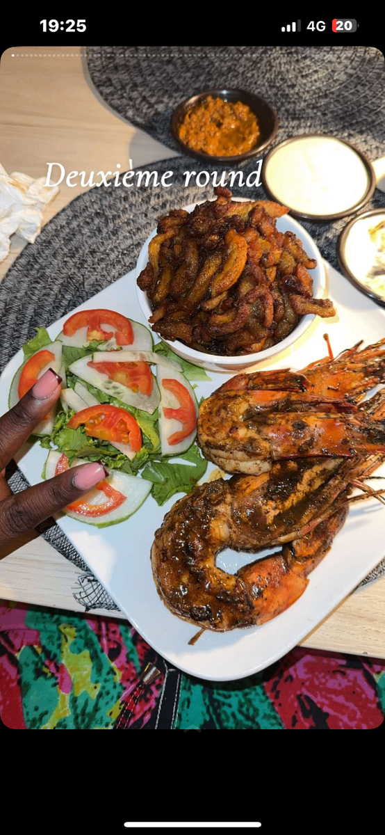 Savourez nos crevettes grillées parfaitement assaisonnées, accompagnées de frites croustillantes et d'une salade fraîche. Parfait pour un dîner entre amis ou un repas gourmet à la maison. Un véritable régal pour les amateurs de fruits de mer!