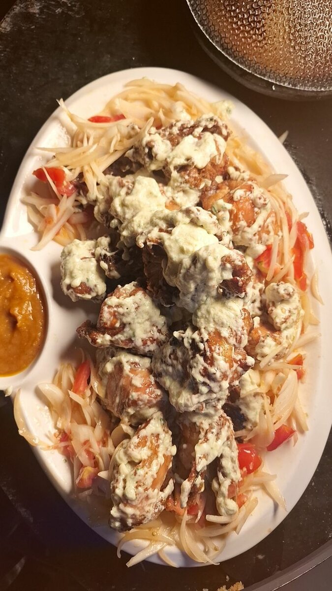 Savourez nos ailes de poulet croustillantes, enrobées d'une sauce crémeuse irrésistible. Servies sur un lit de légumes croquants, elles sont parfaites pour un dîner entre amis ou une soirée familiale. Un régal pour les amateurs de viande!