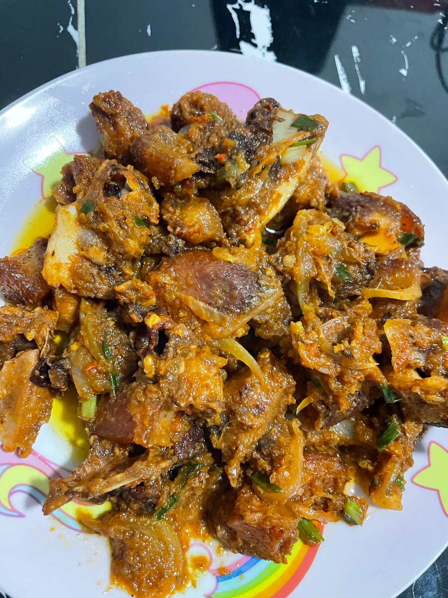 Savourez notre plat exquis de viande de porc épicée, préparé avec des morceaux tendres et savoureux, cuisinés avec des épices locales pour une explosion de saveurs. Parfait pour un repas convivial entre amis ou en famille, ce plat succulent apportera du piquant à votre table!