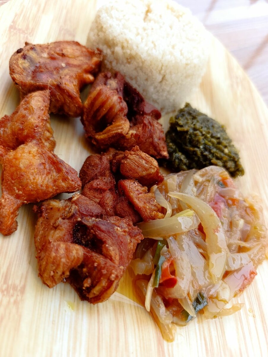 Découvrez notre savoureux plat de viande tendre, accompagnée de riz moelleux, de légumes épicés et d'une sauce verte unique. Parfait pour un repas réconfortant ou une occasion spéciale. Idéal pour les amateurs de cuisine authentique et savoureuse.