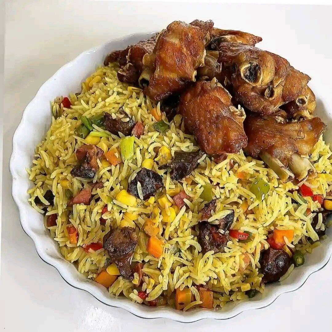 Savourez notre Riz Jollof exquis accompagné de savoureux morceaux de poulet grillé. Parfait pour un dîner savoureux et coloré, ce plat ravira vos papilles avec son mélange de riz épicé et de légumes frais. Une option idéale pour vos repas de fête ou un festin en famille.