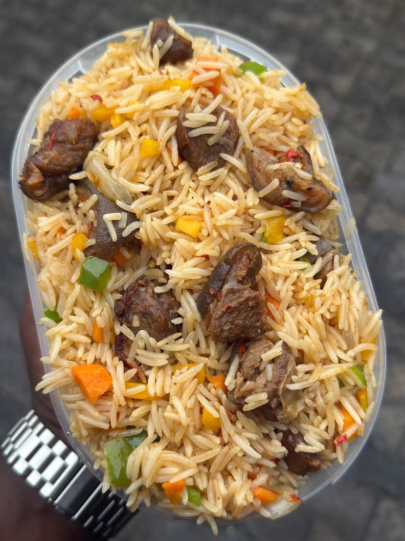 Savor the rich taste of our authentic Jollof rice, perfect for any celebration. Made with premium ingredients, this dish is a crowd-pleaser at gatherings. Enjoy the vibrant flavors of tomatoes, bell peppers, and spices, complemented by tender meats and vegetables. Ideal solution for hosting events and enjoying cultural cuisine.