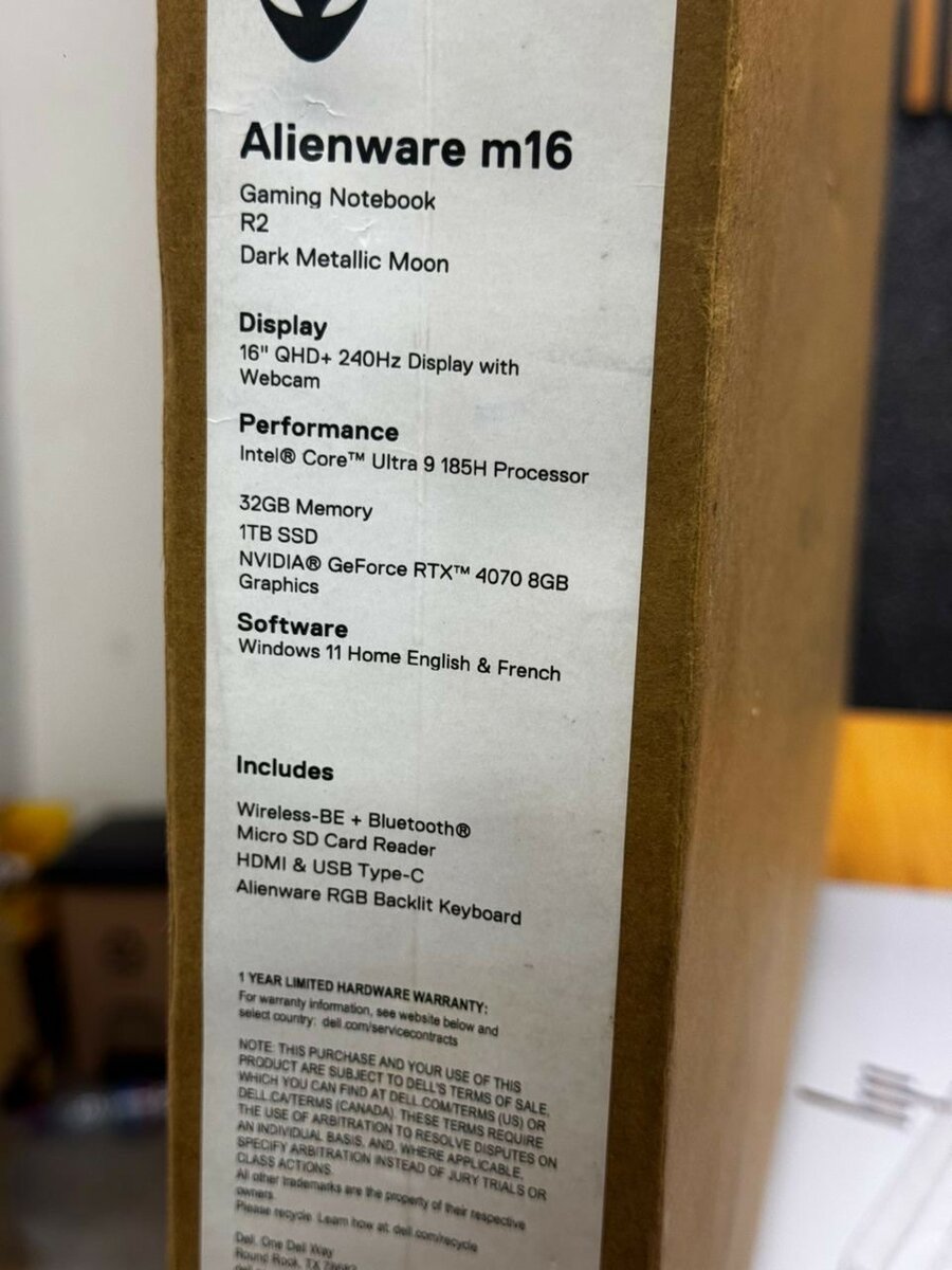 Dell Alienware gaming laptop M16 R2. 16 screen Intel Core Ultra 9 32GB RAM 1TB SSD NVIDIA GEFORCE RTX 4070, 8gb Dedicated Graphics