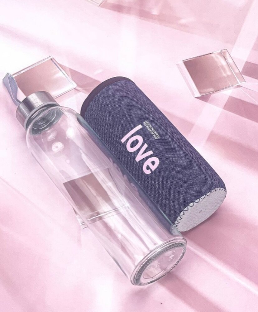 Glass Water Bottle with Handy Strap Steel Cap Lid 500ml