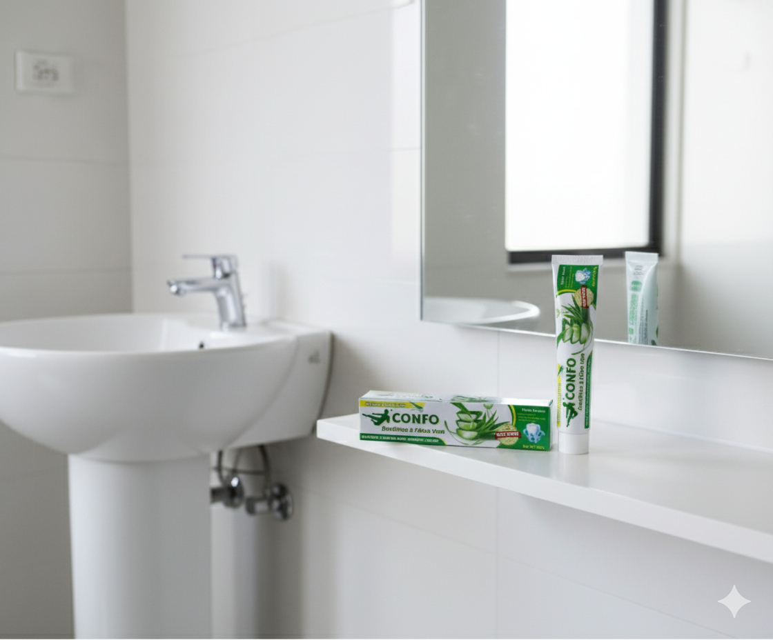 Découvrez le dentifrice à l'Aloe Vera de Confo, idéal pour une hygiène bucco-dentaire impeccable. Enrichi en aloe vera naturel, il rafraîchit l'haleine, protège vos gencives et vous préserve des infections dentaires. Parfait pour toute la famille, il deviendra un essentiel de votre salle de bain.