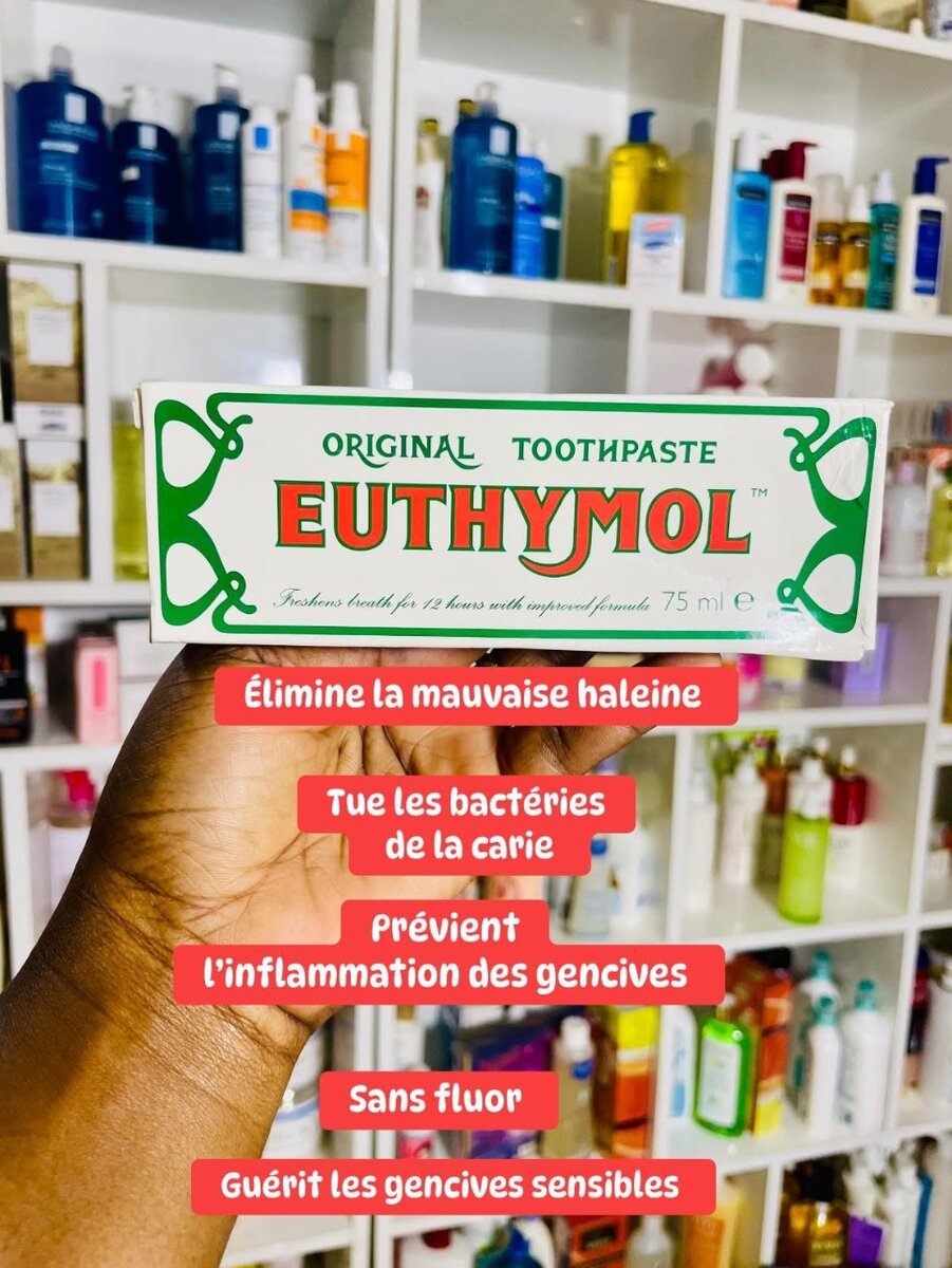 Découvrez le dentifrice Euthymol Original, sans fluor, qui élimine la mauvaise haleine et tue les bactéries. Prévient l'inflammation des gencives et guérit les gencives sensibles. Un choix idéal pour une hygiène buccale efficace et naturelle.