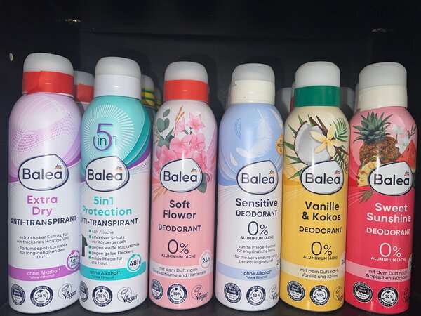 Découvrez notre gamme de déodorants Balea: protection longue durée, doux pour la peau et sans aluminium. Parfaits pour l'usage quotidien, pour hommes et femmes.