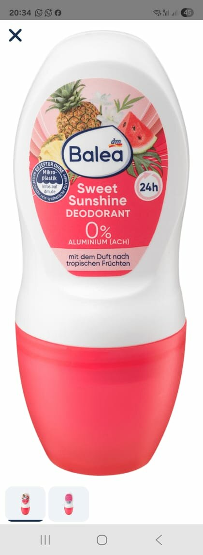 Profitez d'une fraîcheur tropicale toute la journée avec le déodorant Balea Sweet Sunshine. Sans aluminium, il offre une protection efficace de 24h avec un parfum exotique de fruits tropicaux comme l'ananas et la pastèque. Idéal pour ceux qui recherchent une solution naturelle et agréable au quotidien.