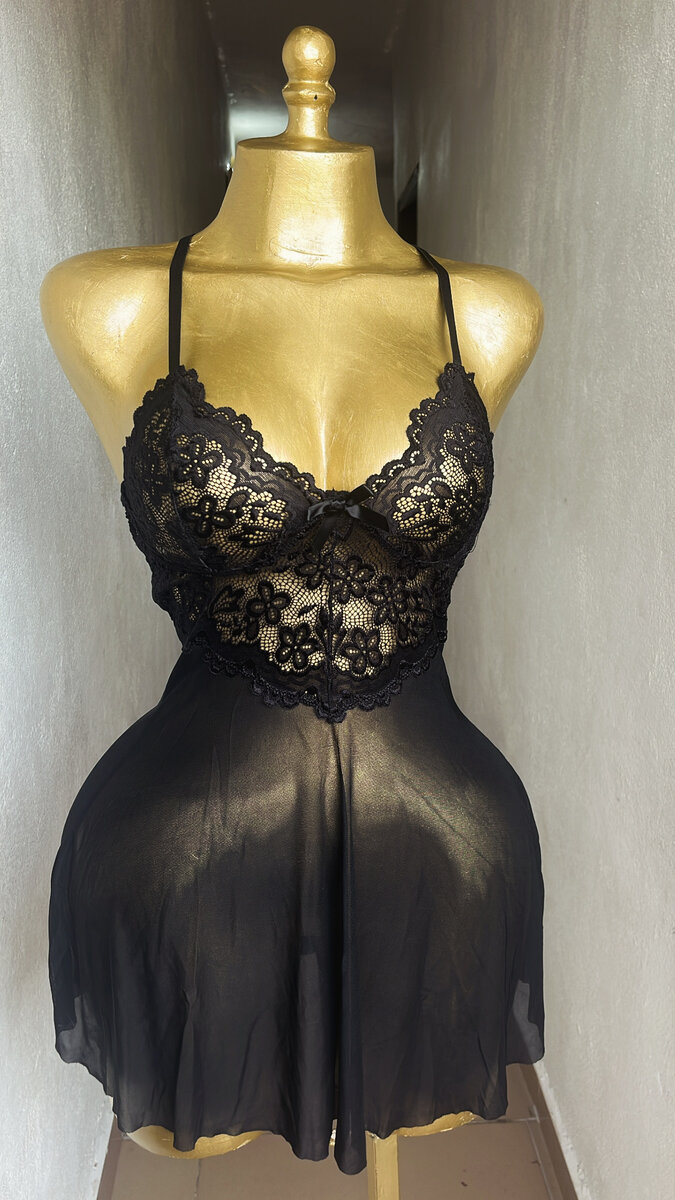 Séduisant déshabillé noir en dentelle, parfait pour des soirées romantiques. Conçu en tissu doux et transparent, il offre confort et sensualité. Détails en dentelle délicate pour un look élégant et féminin. Idéal pour les soirées spéciales ou une nuit confortable à la maison. Disponible dans toutes les tailles.