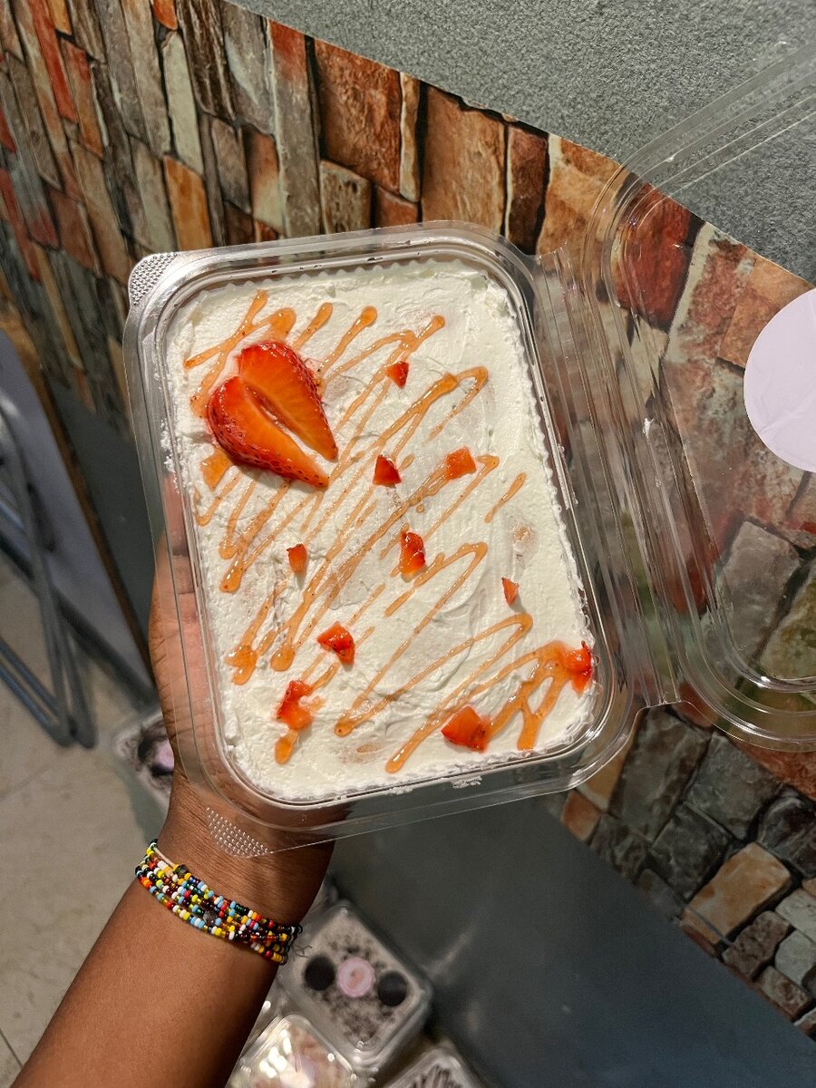 Découvrez ce délicieux dessert aux fraises, parfait pour toute occasion. Savourez la douceur de la crème, sublimée par des fraises fraîches et un filet de caramel. Idéal pour les soirées entre amis ou pour finir un repas en beauté.