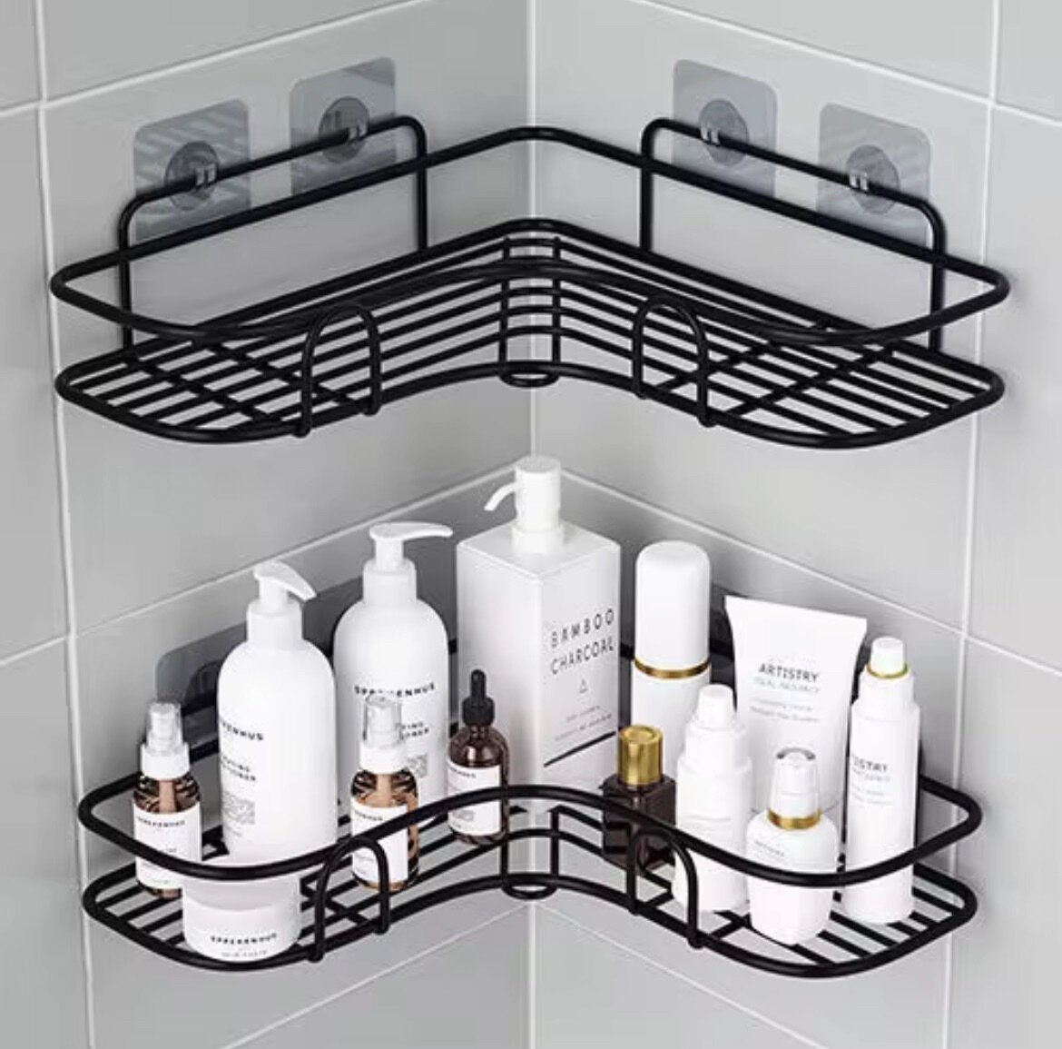 Optimisez votre espace avec cette élégante étagère d'angle murale noire. Facile à installer grâce à ses ventouses adhésives, elle est idéale pour la salle de bain ou la cuisine. Rangez vos produits cosmétiques ou vos épices en toute sécurité et avec style. Structure métallique durable qui s'adapte à tous les décors. Parfaite pour une organisation sans tracas.