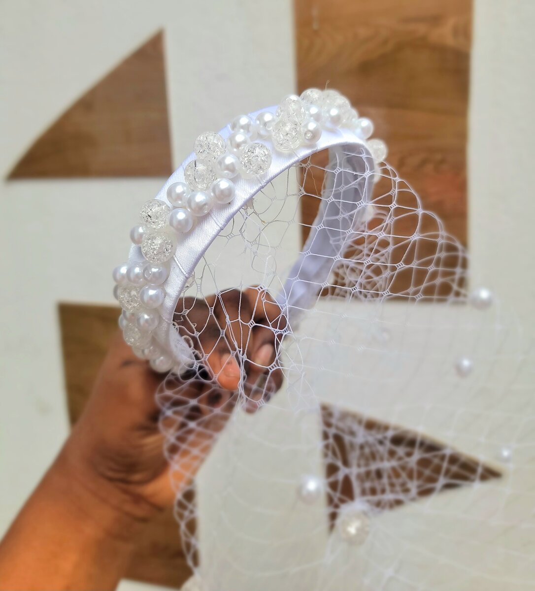 Sublimez votre look de mariage avec ce diadème élégant, orné de perles délicates et d'un voile raffiné. Parfait pour la mariée moderne recherchant une touche de glamour intemporel. Idéal pour compléter une coiffure romantique et sophistiquée.