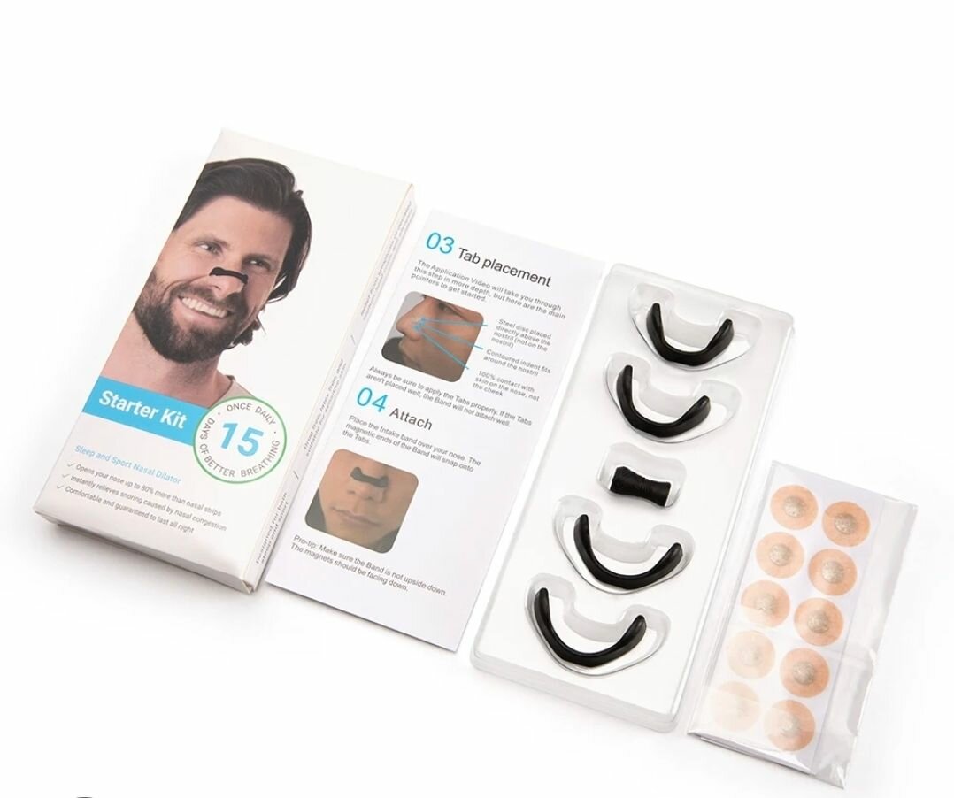 Découvrez notre kit Dilator Nasal une respiration optimisée et confortable. Inclut 4 bandeaux de tailles variées et un applicateur magnétique. Parfait pour une nuit paisible et aussi pour les sportifs