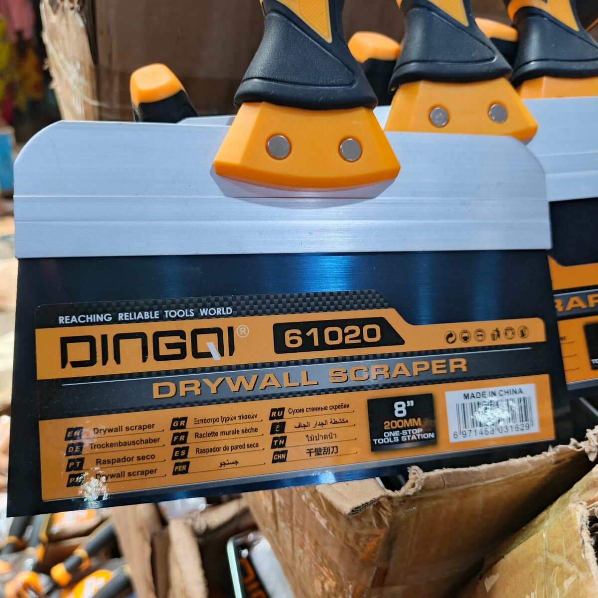 Racleur de plâtre Dingqi de haute qualité. Conçu pour lisser et éliminer efficacement le plâtre. Lame de 20 cm idéale pour les travaux de construction et finition intérieure. Poignée ergonomique pour un confort optimal. Parfait pour les professionnels et amateurs de bricolage.