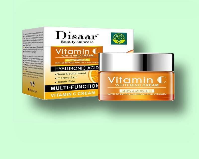 DiSaar Vitamin C Facial Cream brightens and evens out skin tone, reducing the appearance of fine lines, wrinkles, and dark spots, while also providing antioxidant protection against environmental stressors. This nourishing cream hydrates and plumps the skin, leaving it feeling softer, smoother, and more radiant, with a noticeable glow and improved overall skin health.