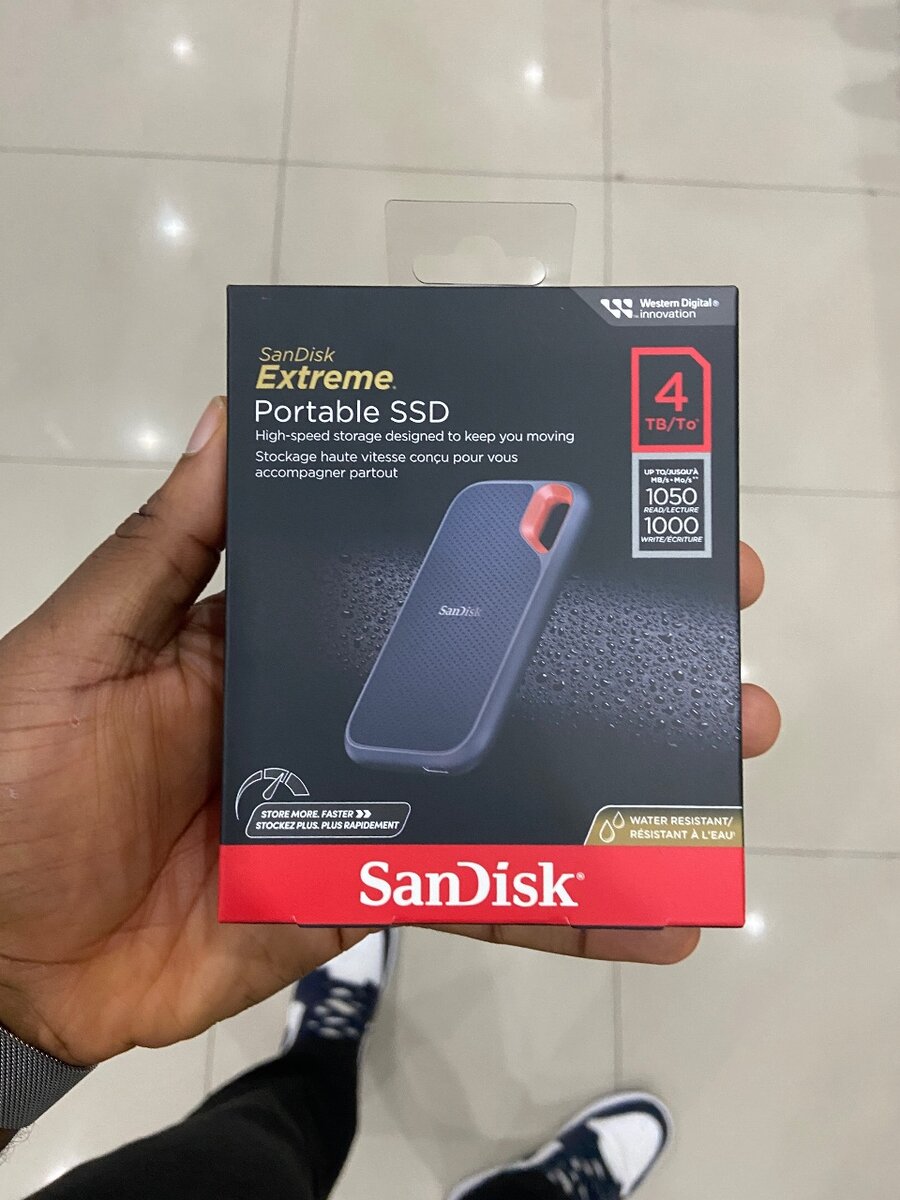 Optez pour le SanDisk Extreme SSD 4TB, le choix idéal pour transporter vos données en toute sécurité et à grande vitesse. Avec une capacité de 4 To et une résistance à l'eau (IP55), il offre jusqu'à 1050 Mo/s de transfert rapide. Parfait pour les créateurs et les professionnels en déplacement, sa robustesse et son design compact en font un excellent compagnon de voyage. Compatible Mac et PC, l'efficacité est entre vos mains.
