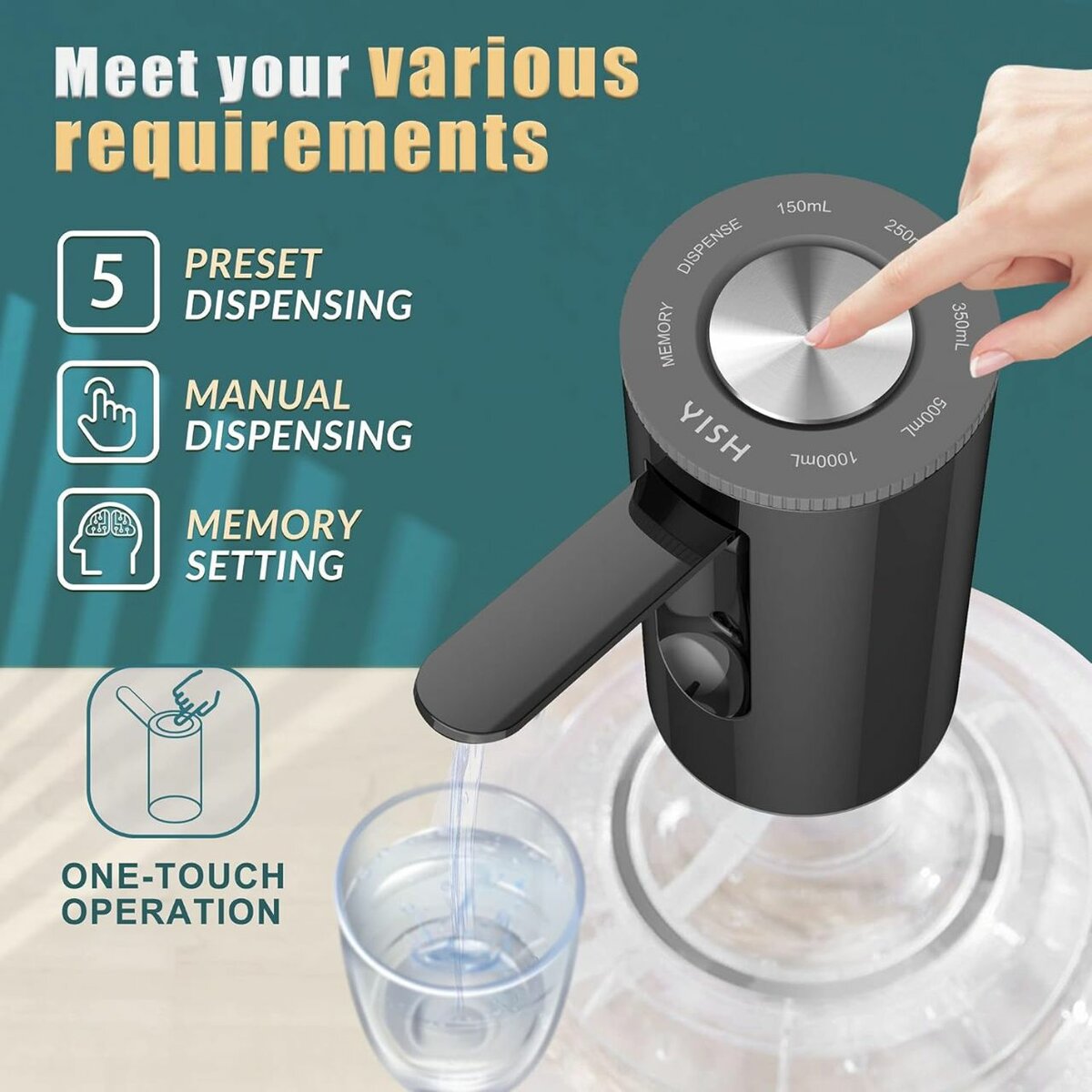 Distributeur d'eau électrique pour bouteille d'eau, pompe à eau rechargeable avec 5 réglages de dosage et fonction mémoire pour un usage pratique. Idéal pour la maison et le bureau.