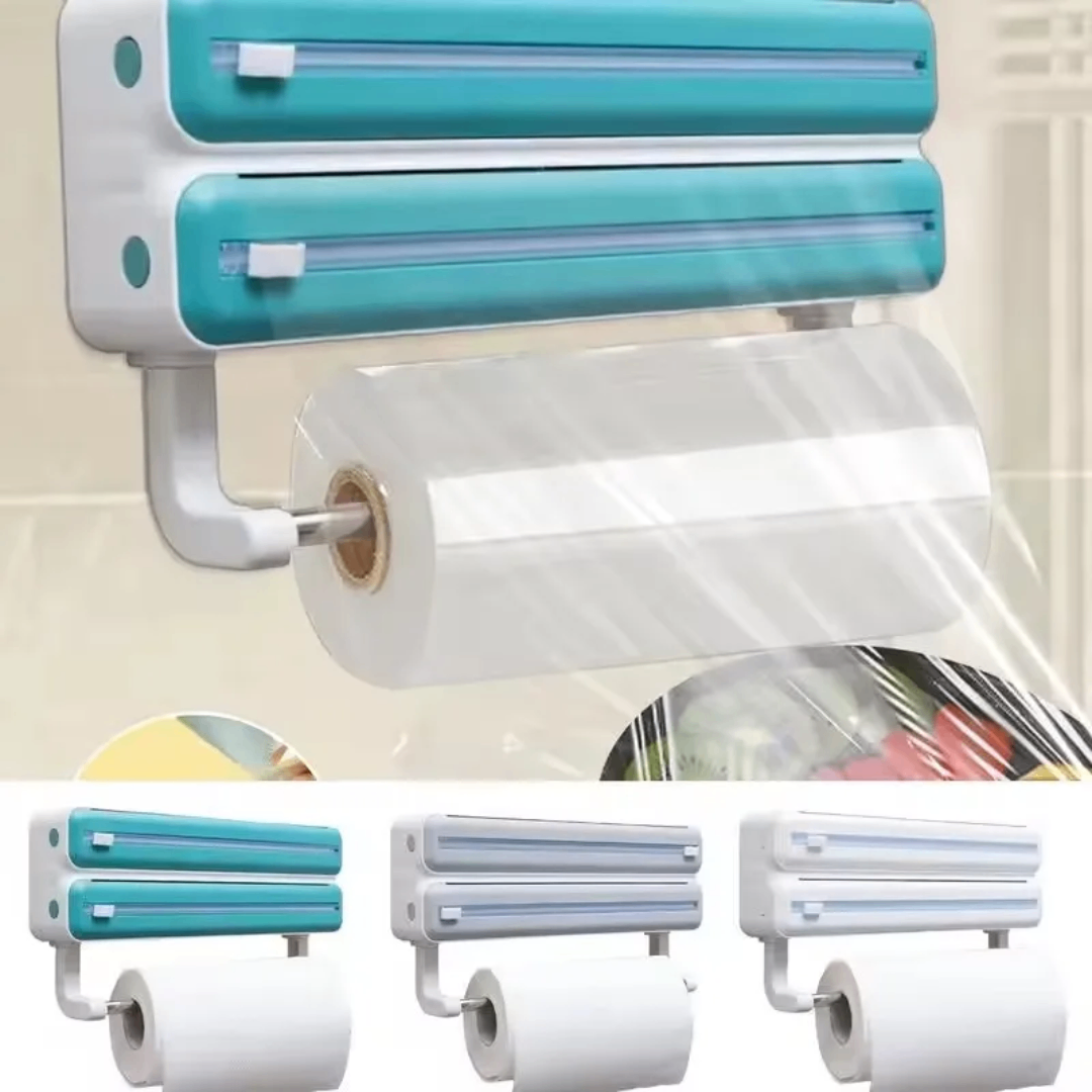 Organisez votre cuisine avec ce distributeur mural pour papier aluminium, film plastique et papier essuie-tout. Pratique et compact, il s’installe facilement et économise de l’espace. Idéal pour une cuisine moderne et organisée!