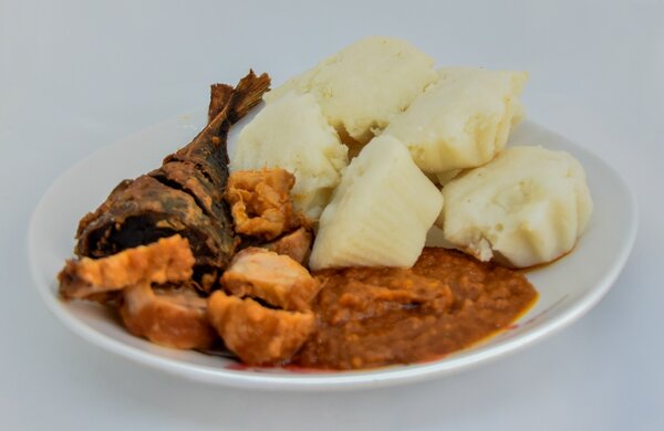 Découvrez un repas africain authentique, idéal pour explorer de nouvelles saveurs exotiques. Ce plat comprend des boulettes savoureuses plongées dans une sauce riche et épicée, accompagnées de viande tendre et d'une touche d'oignons. Parfait pour un dîner chaleureux ou une occasion spéciale.