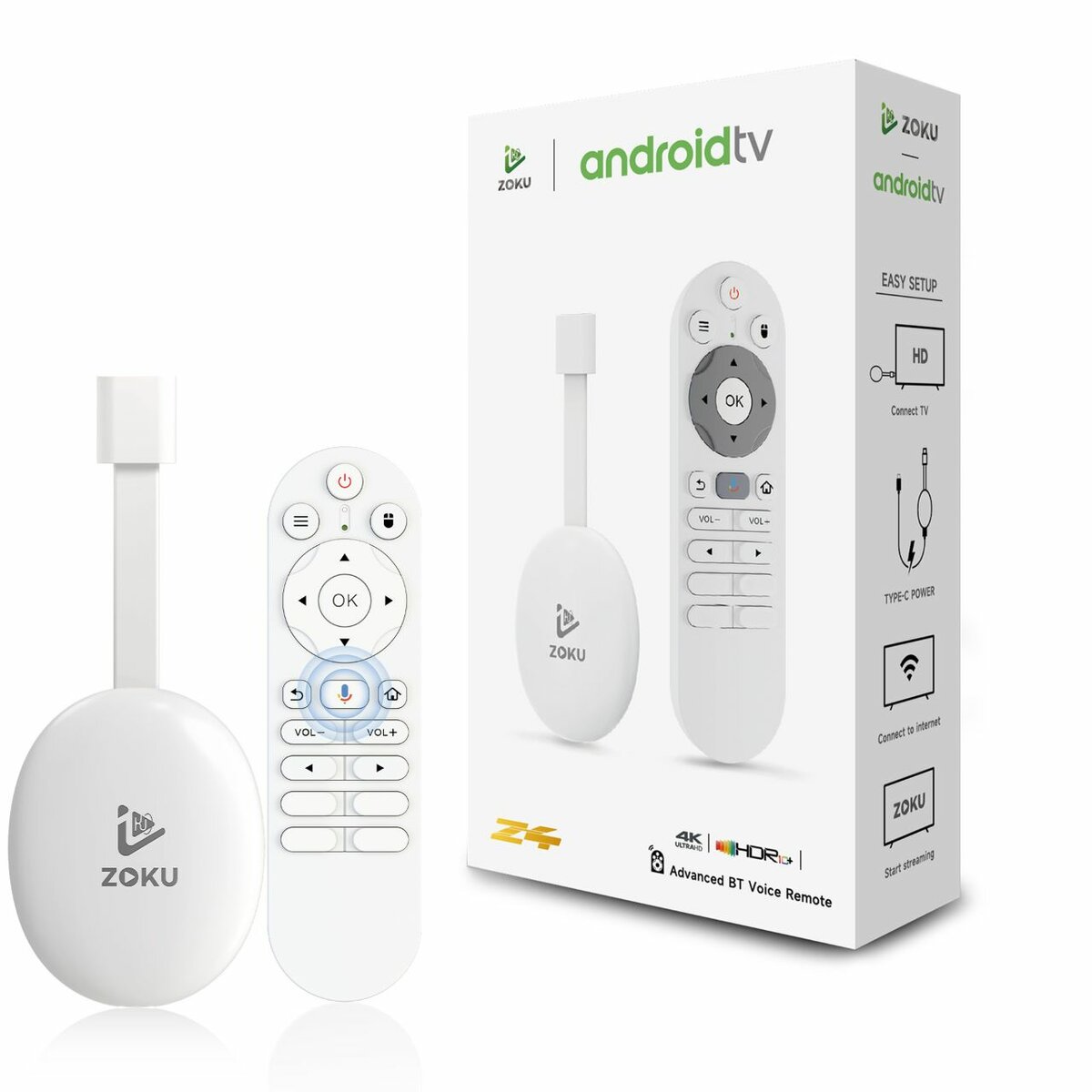 Transformez votre téléviseur en Smart TV avec le Dongle TV Android Zoku. Profitez de la 4K, du contrôle vocal BT avancé et d'une installation facile. Compatible WiFi pour un streaming sans interruption.