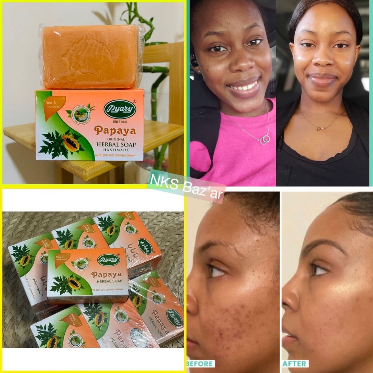 Ce savon nourrit profondément la peau, la régenère répare, réduit les taches noires et blanches, taches de dépigmentation Il réduit les risques d'allergies cutanées, débarrasse des peaux mortes et prend soin de l'épiderme ,c'est un super savon pour les traitements du visages.