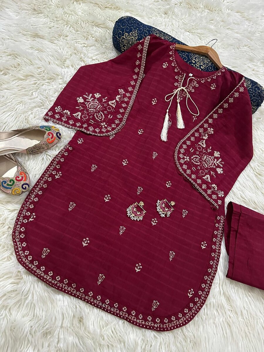 ##eidpret ##newarrivle #summerarrivles Doria Lawn Stuff thread Embd Shirt+pent S.18Chest M.21 L.22 Lenght.....39.40 2p.....3800 with dc