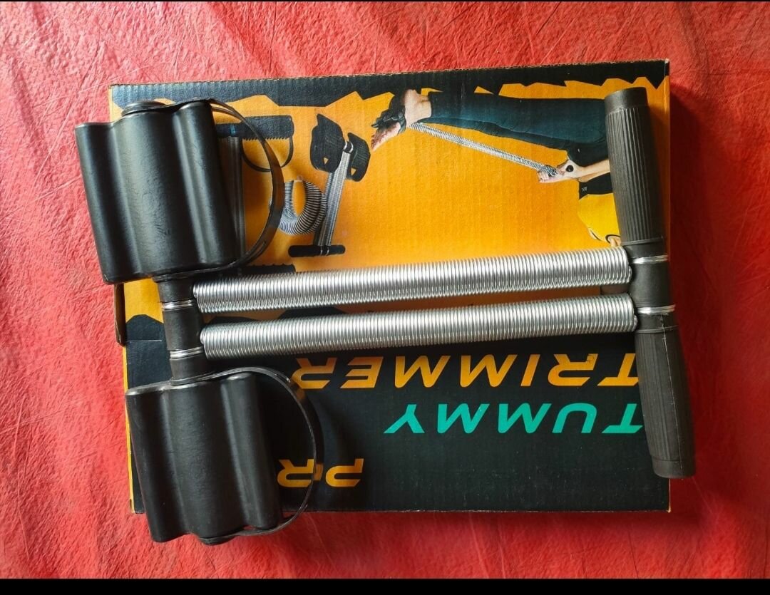 Lose belly fat fast with Double Spring Tummy Trimmer. Workouts with machine Biceps Triceps crunches leg raises etc All in one home gym equipment