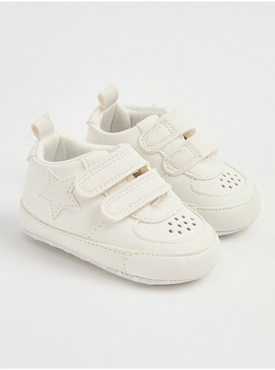 Double hook and loop tape strap fastening Backstay tabs Stitched star detail Lightly gripped outer sole