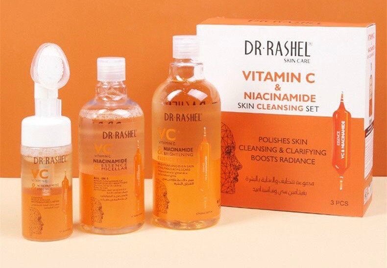 DR RASHEL SKIN CARE VITAMIN C & NIACINAMIDE SKIN CLEANSING SET POLISHES SKIN CLEANSES & CLARIFIES BOOSTS RADIANCE ESSENCE