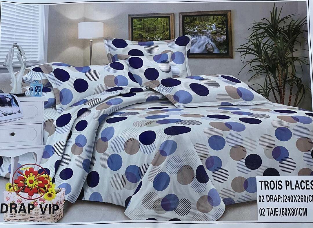 Ajoutez une touche moderne à votre chambre avec ce set de draps à motifs géométriques. Comprend un drap de 240x260 cm et deux taies de 60x80 cm. Idéal pour un lit double, ce set assure confort et style.