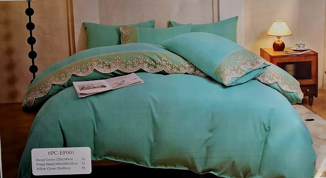 Drap 6 pièces 100% conton glacé 2 draps 3 places (4taies brodé )