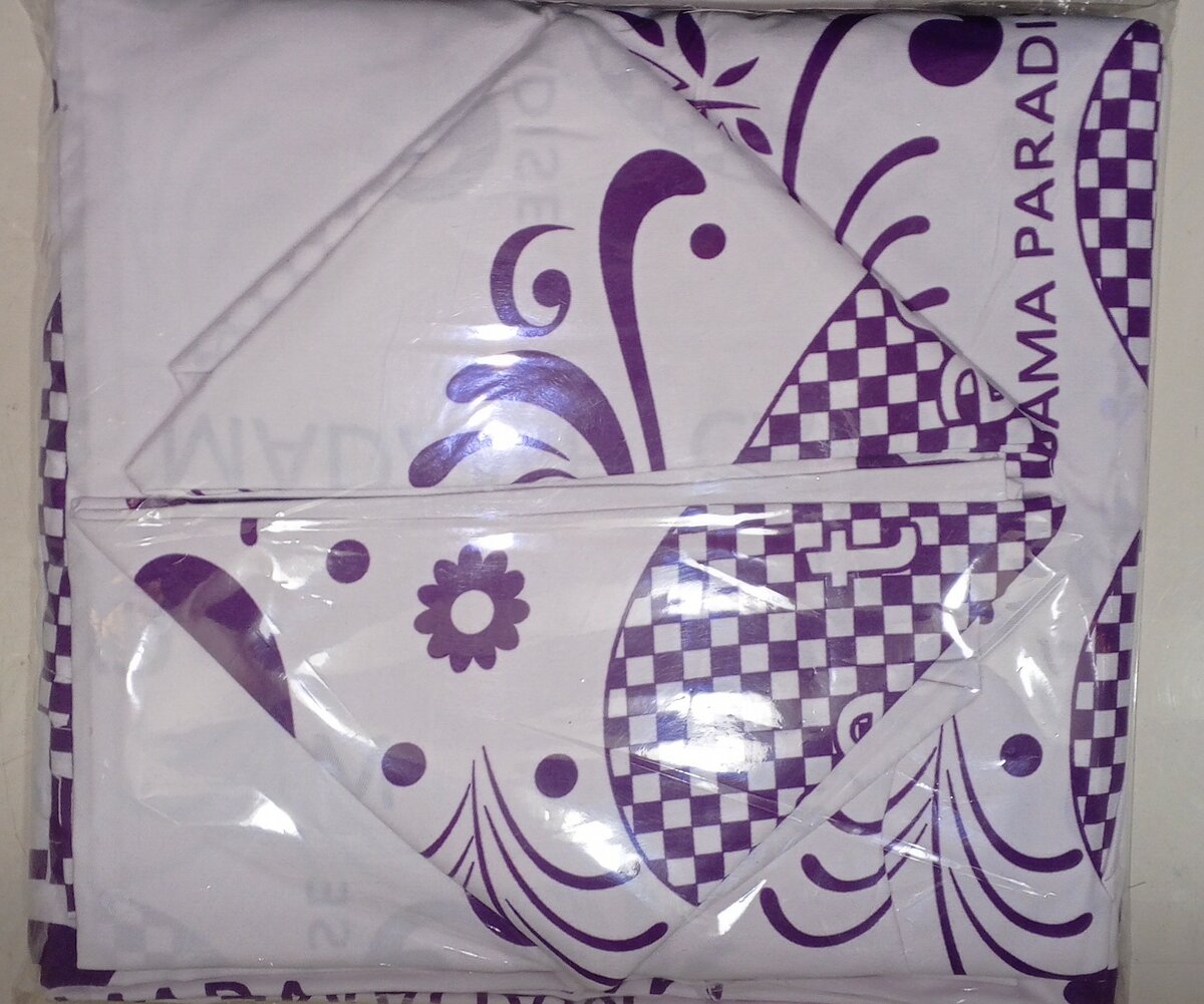 Ensemble de housses de couettes avec motifs violets sur fond blanc. Conception élégante et moderne pour une chambre confortable.