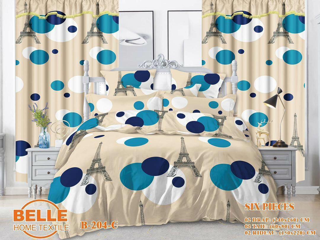 2draps 2rideaux 2taies d'oreillers
