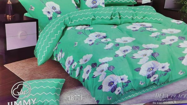 Parure de lit fleurie verte