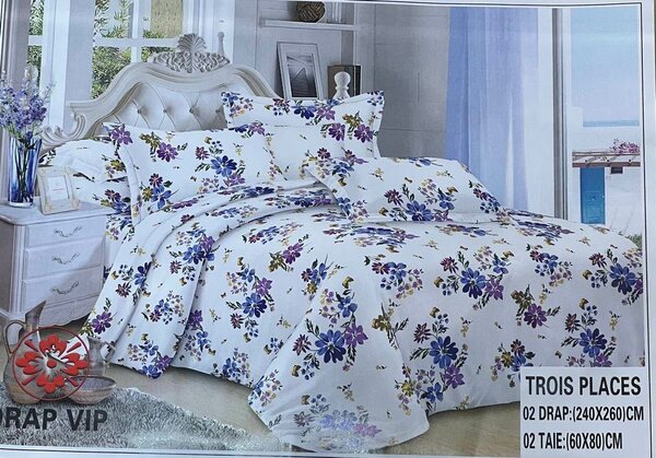 Draps de qualité supérieure à des prix imbattables 100% coton glacé. Draps deux places avec deux taies d'oreiller