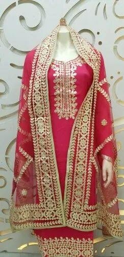 Party wear chiffon embroidery stitch 3 pc dc free