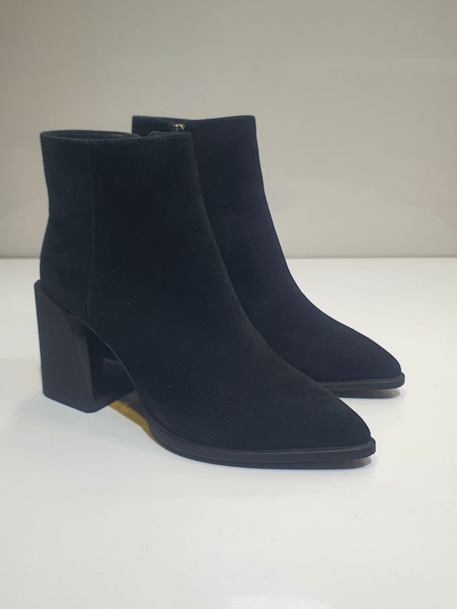 Материал: Натуральная замша Цвет: Черный Каблук: Устойчивый, матовый, средний Носик: Заостренный Застежка: Молния Сезон: Весна-осень Размеры: 33, 39, 40 Идеально сочетаются с: * Джинсами * Юбками * Платьями * Кожаными куртками
