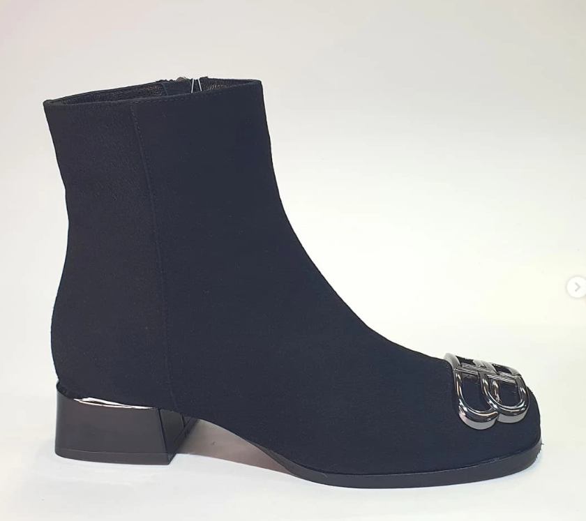Ботинки Сезон: Деми Материал: Натуральная замша Каблук: 3,5 см Подошва: Резина Колодка: Анатомическая Стелька: Велюр Застёжка: Молния Декор: Металлическая вставка на носке Размер: 36