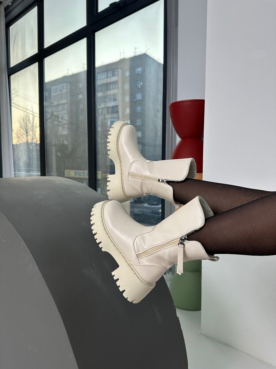Белые теплые ботинки в налим!