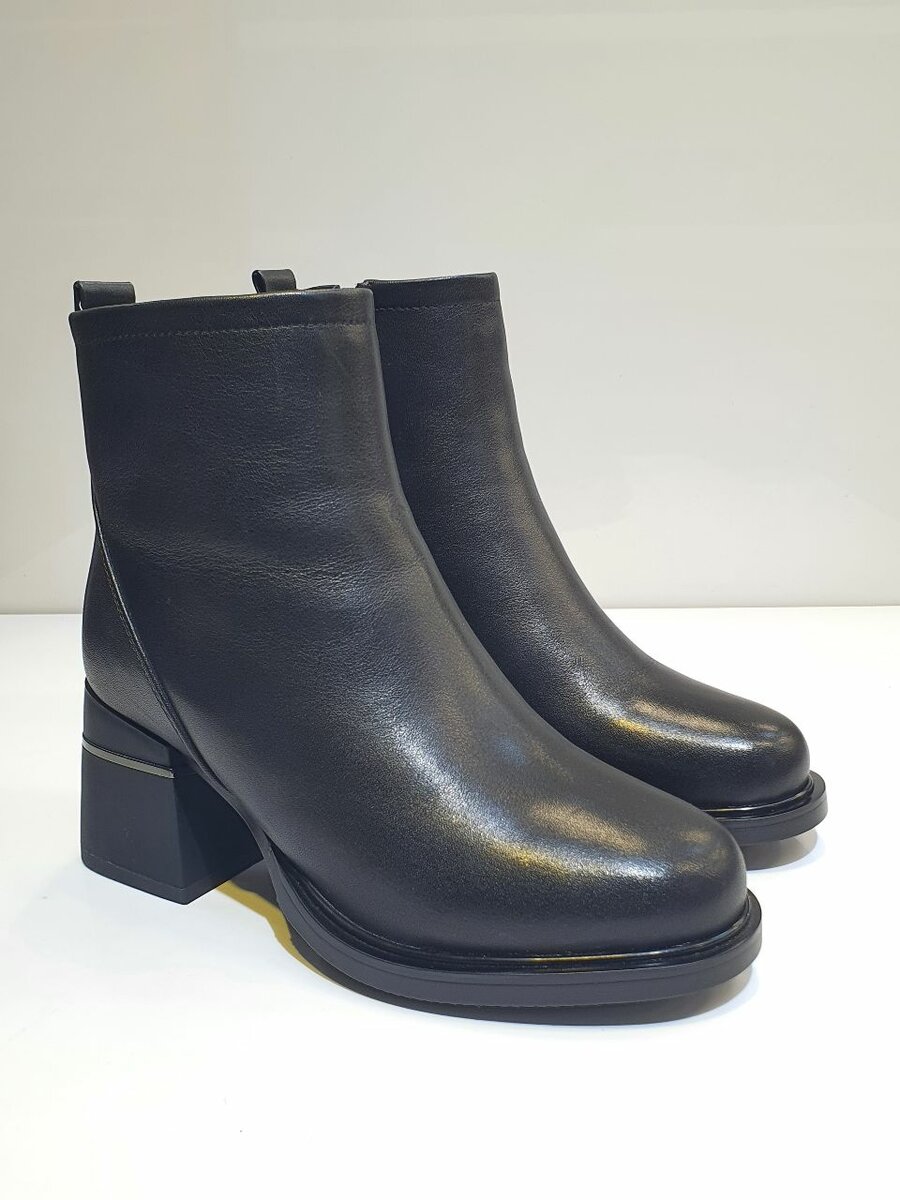Материал: Натуральная кожа Цвет: Черный Подошва: Массивная рифленая резиновая подошва Каблук: Квадратный каблук, высота около 6 см Застежка: Боковая молния Сезон: Зима Размер: 38, 38, 40 Арт: Ж.и 224-703-56