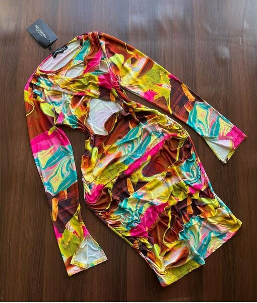 Multi Watercolour print Plisse dress