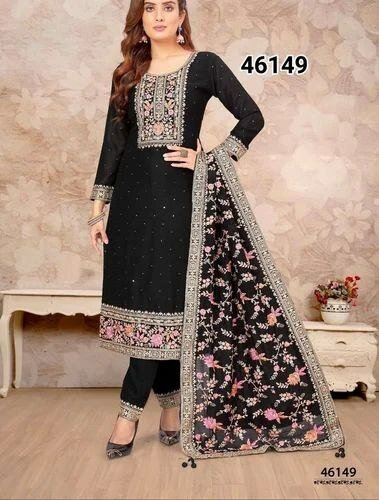 3 Pcs Women Stitched Katan Silk Embroidered Suit