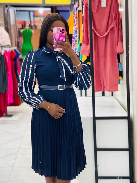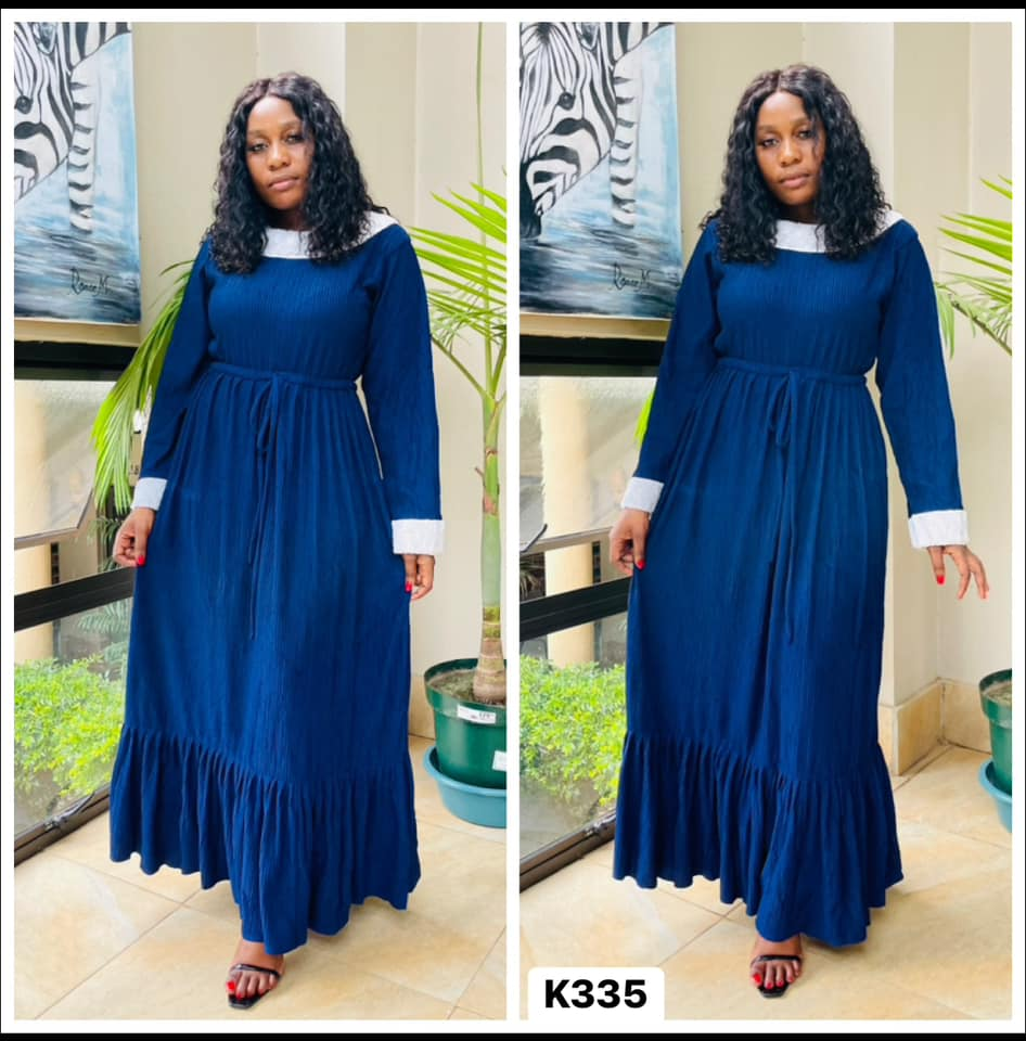 Robe femme à manches longues jusqu'au sol avec boutons, bleu
