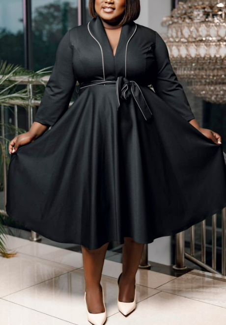 Robe femme à manches longues jusqu'au sol avec boutons, noir