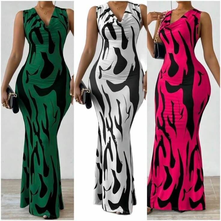 Printed Draped Neck Extra Long Cami Dress