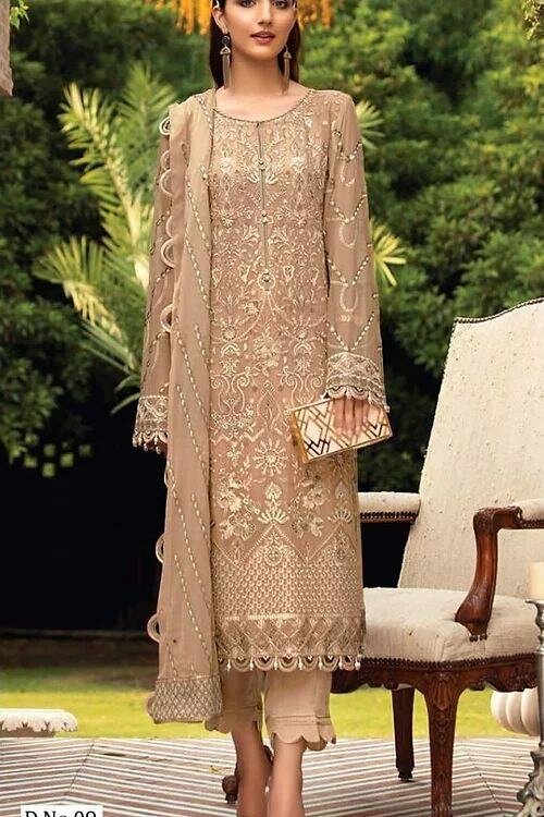 Chiffon heavy embroidery unsatich 3 pc Dc free