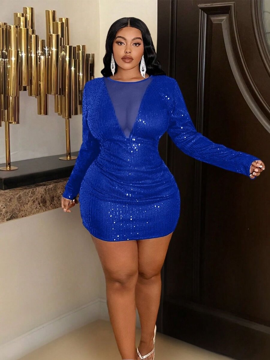 SHEIN SXY Mock Neck Lettuce Trim Glitter Bodycon Dress