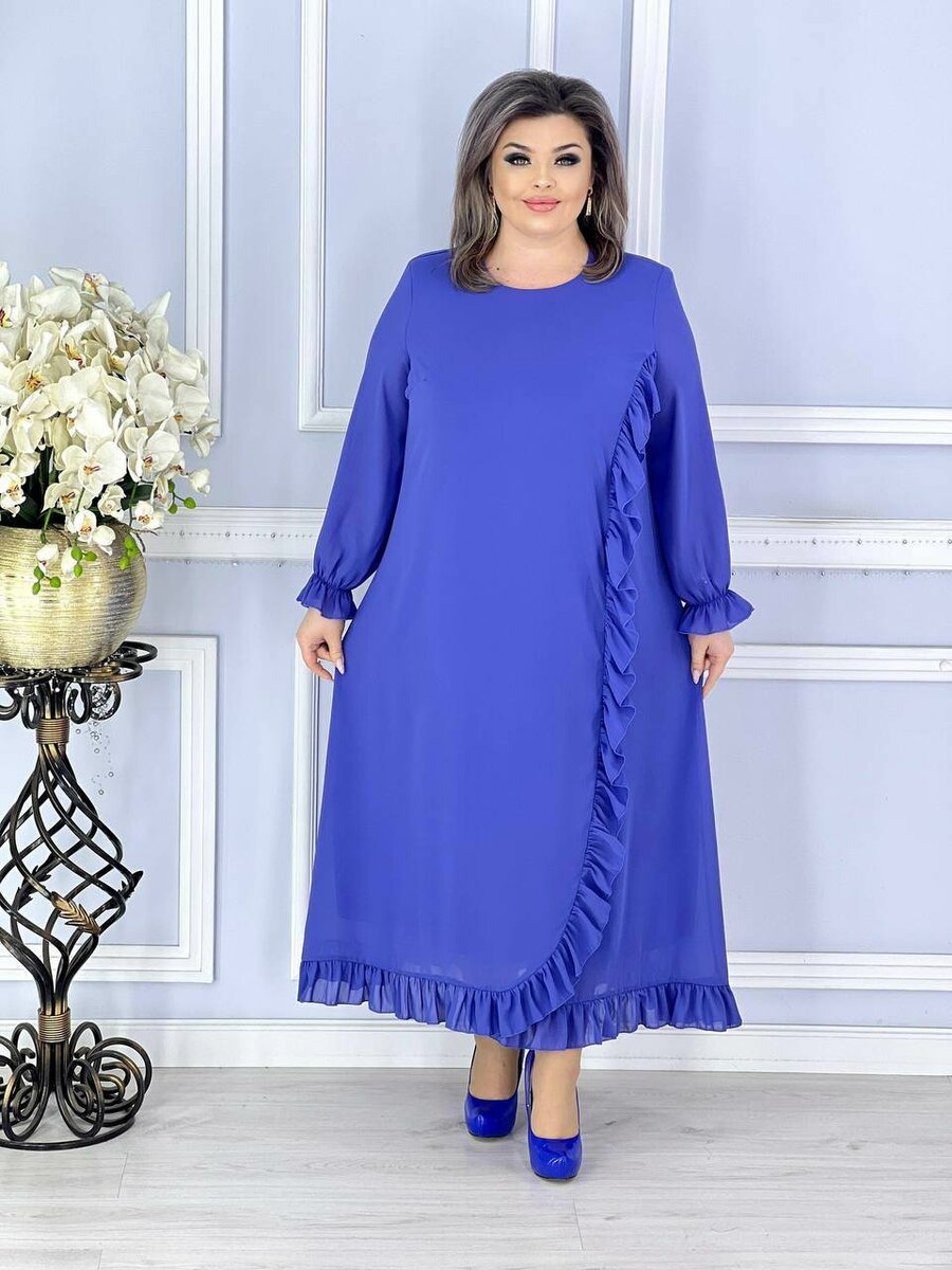 Ткань креп шифон На подкладе хб Размеры 54-56-58-60 Цвет:электр синий