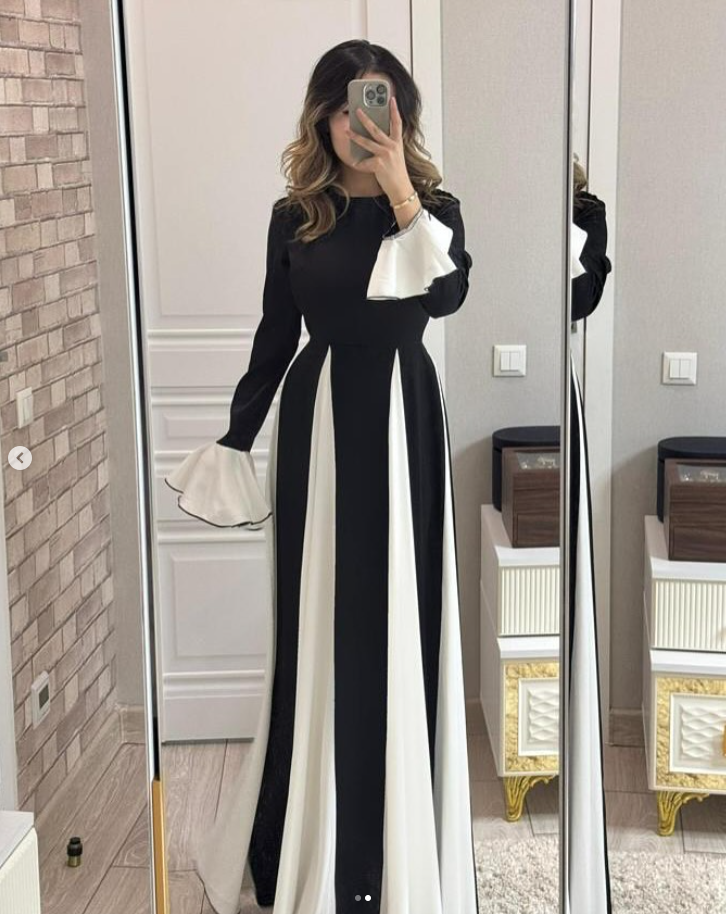 Элегантное платье в пол из клина, выполненное в сочетании белого и черного цветов🖤🤍 Сзади стильная шнуровка, подчеркивающая талию и создающая утонченный силуэт. 🖤🤍 ✨ Ткань; Русский Сатин 💕👍 Размер: *СТАНДАРТ*