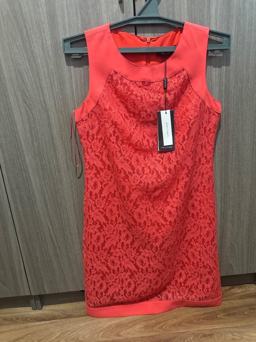 Кружевное платье кораллового цвета.Длина по колено.Новое,с этикеткой.
